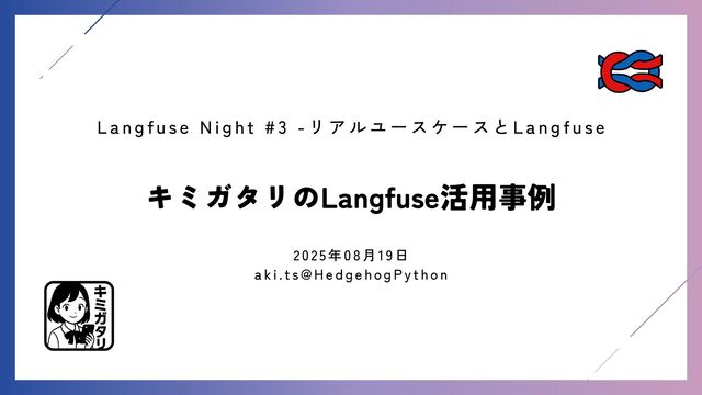 i g h t # 3 - リ ア ル ユ ー ス ケ ー ス と L a n g f u s e 2 0 2 5 年 0 8 月 1 9 日 a k i . t s @ H e d g e h o g P y t h o n