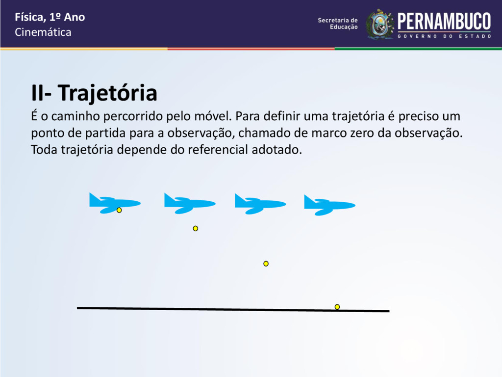 uma trajetória é preciso um ponto de partida para a observação, chamado de marco zero da observação. Toda trajetória depende do referencial adotado. Física, 1º Ano Cinemática
