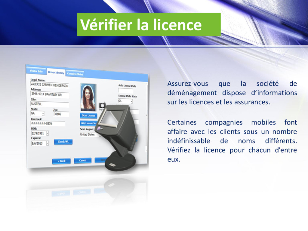 d’informations sur les licences et les assurances. Certaines compagnies mobiles font affaire avec les clients sous un nombre indéfinissable de noms différents. Vérifiez la licence pour chacun d’entre eux.