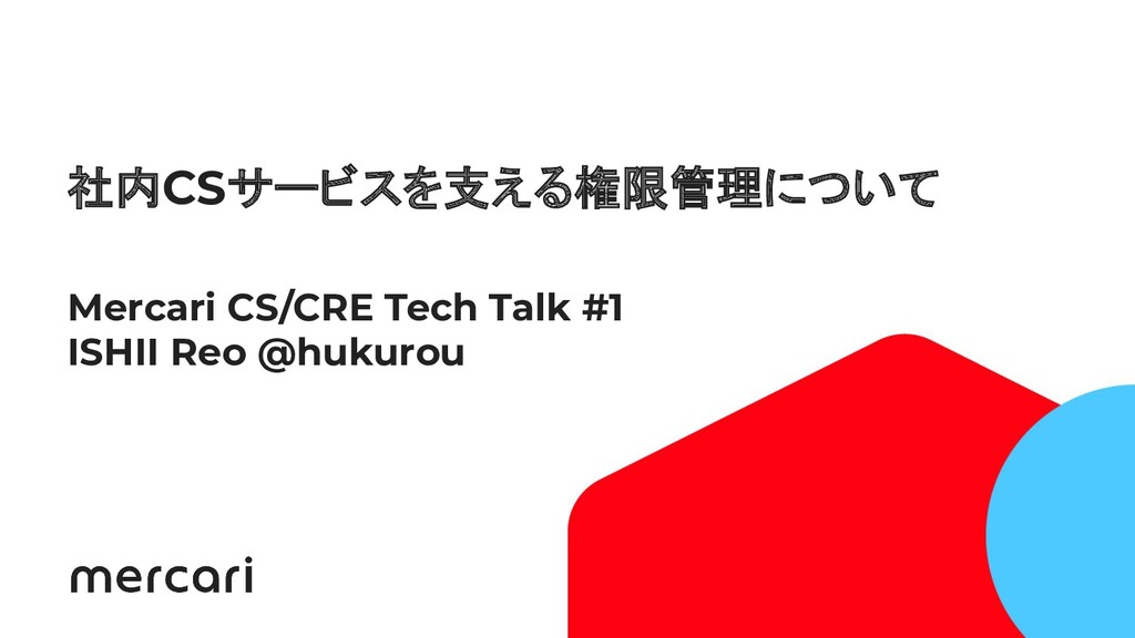 1 社内CSサービスを支える権限管理について Mercari CS/CRE Tech Talk #1 ISHII Reo @hukurou