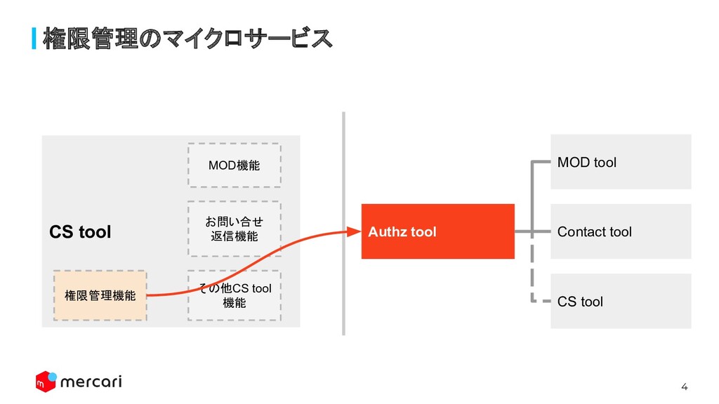 4 権限管理のマイクロサービス CS tool MOD tool Contact tool Authz tool