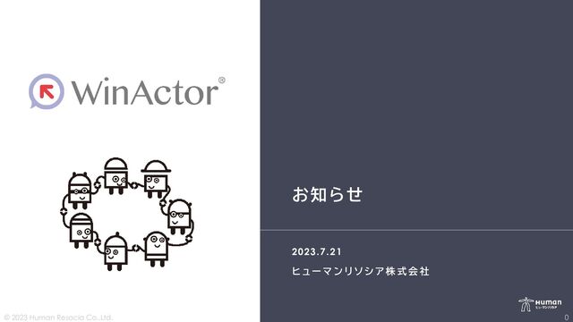 株 式 会 社 お知らせ 2023.7.21 © 2023 Human Resocia Co.,Ltd. 0
