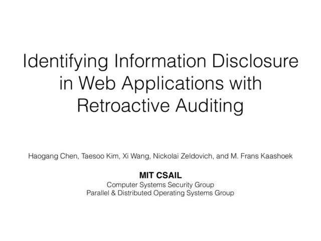 Chen, Taesoo Kim, Xi Wang, Nickolai Zeldovich, and M. Frans Kaashoek MIT CSAIL Computer Systems Security Group Parallel & Distributed Operating Systems Group