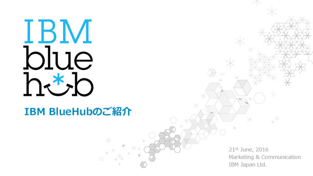 IBM BlueHubのご紹介 21st June, 2016 Marketing & Communication IBM Japan
