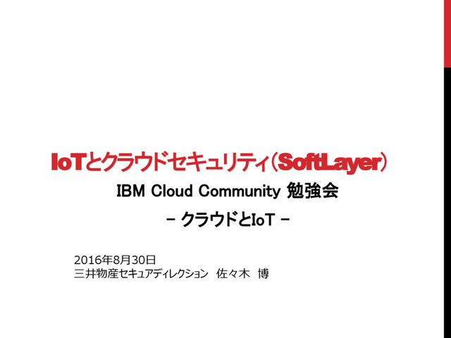IoTとクラウドセキュリティ(SoftLayer) IBM Cloud Community 勉強会 - クラウドとIoT - 2016年8月30日 三井物産セキュアディレクション
