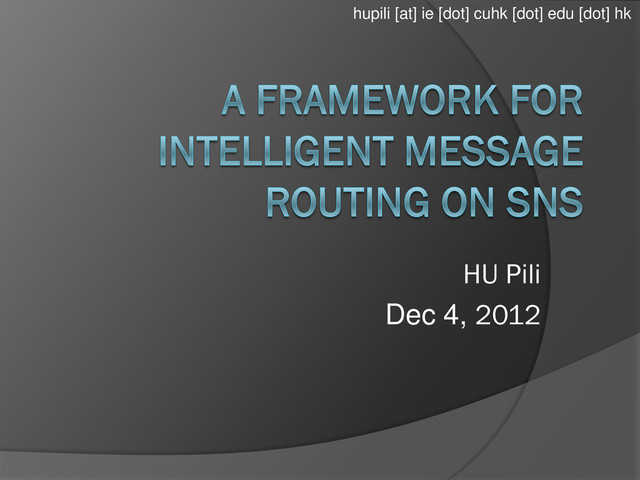 different SNS …more to come. SNSRouter (2800+ lines) A portable web frontend Real data collection (1+ month) A flexible algorithm framework (RPR-SGD) Sample feature extraction modules