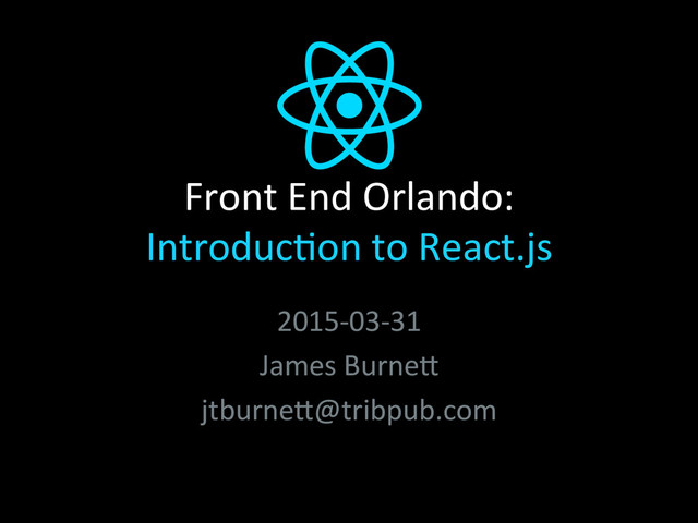 in React • See some actual React in Prac0ce • Get a basic understanding of tes0ng React • Introduc0on to the concept of unidirec0onal dataflow as an “alterna$ve” to MVC • See ReactNa0ve • Play with some examples