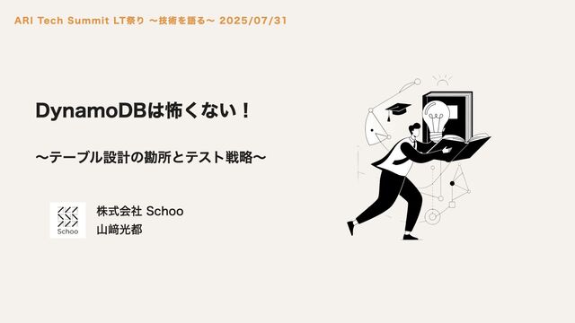 この資料でわかること - DynamoDBの概要 - DynamoDBのテーブルを設計するときの基本的な考え方 - DynamoDBを使ったAPIの統合テスト戦略(Testcontainersを利用した統合テスト)