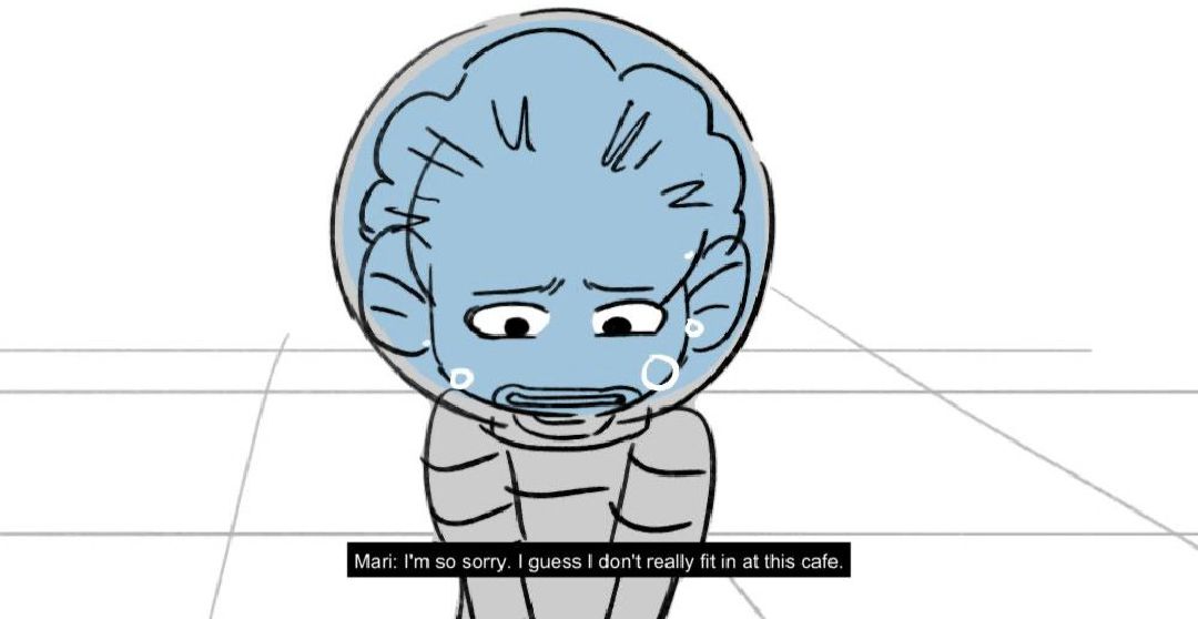 That thought led me to create Mari, a fish character who can’t breathe outside of water and depends on a fishbowl. By combining this idea with the theme of belonging, I tried to weave it all into the story.