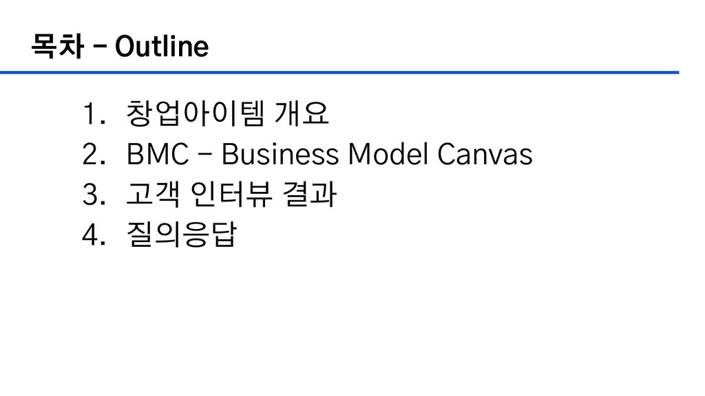 목차 - Outline 1. 창업아이템 개요 2. BMC - Business