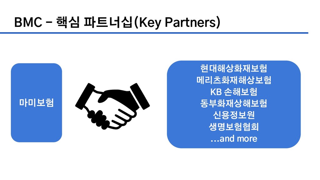 BMC - 핵심 파트너십(Key Partners) 마미보험 현대해상화재보험 메리츠화재해상보험 KB 손해보험