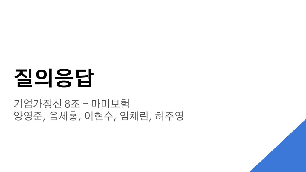 질의응답 기업가정신 8조 - 마미보험 양영준, 음세홍, 이현수, 임채린, 허주영