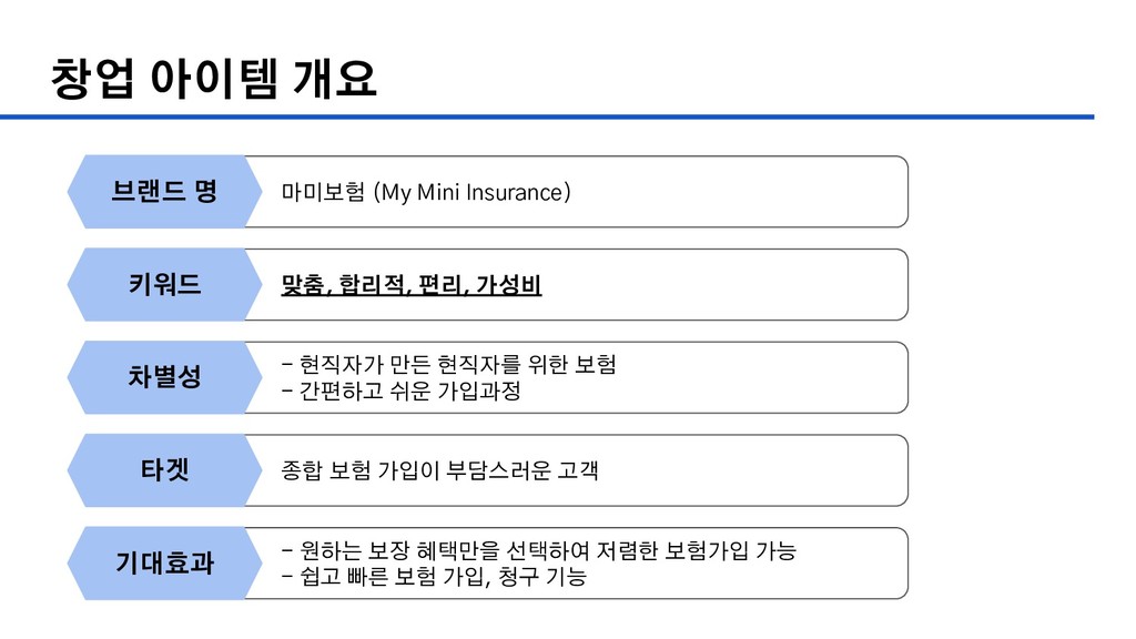 창업 아이템 개요 - 마미보험 (My Mini Insurance) 브랜드 명