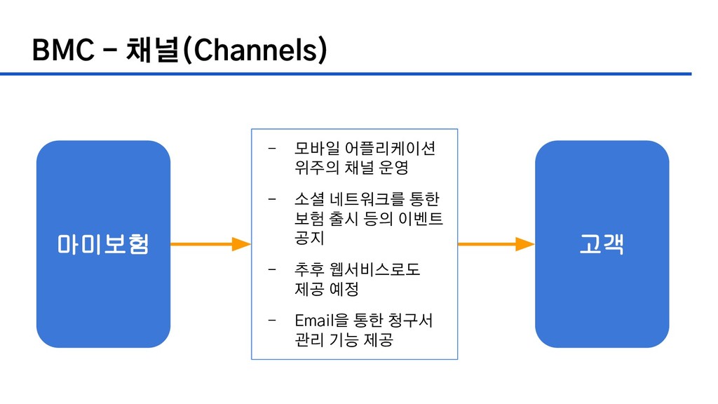 BMC - 채널(Channels) 마미보험 고객 - 모바일 어플리케이션 위주의 채널