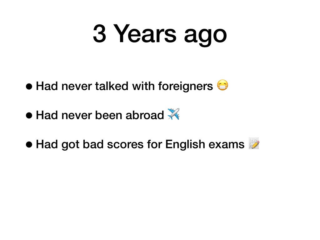 3 Years ago •Had never talked with foreigners •Had never