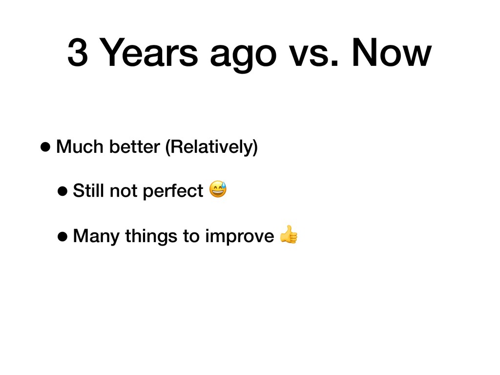 3 Years ago vs. Now •Much better (Relatively) •Still not