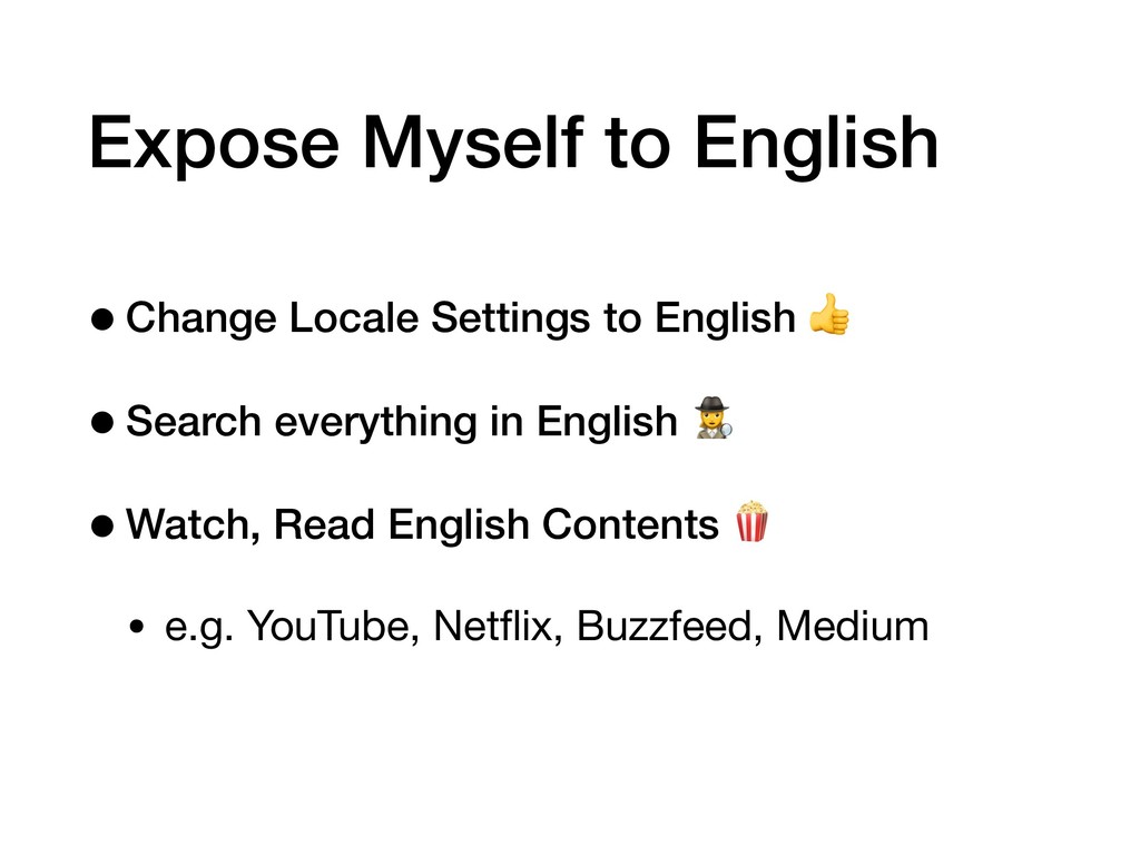 everything in English ) •Watch, Read English Contents • e.g. YouTube, Netflix, Buzzfeed, Medium