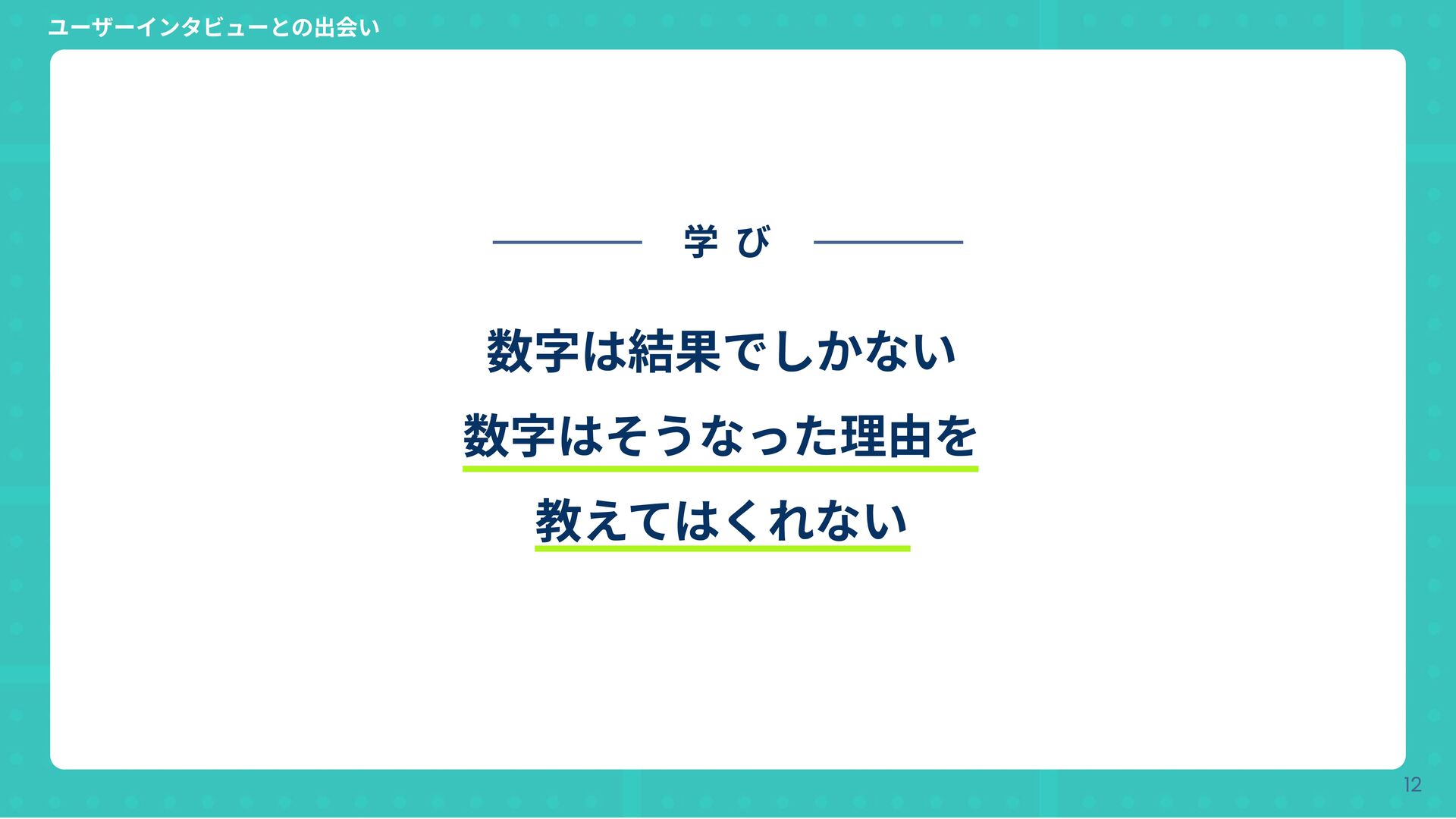 Copyright © Hatena Co., Ltd. 12 数字は結果でしかない 数字はそうなった理由を 教えてはくれない 学