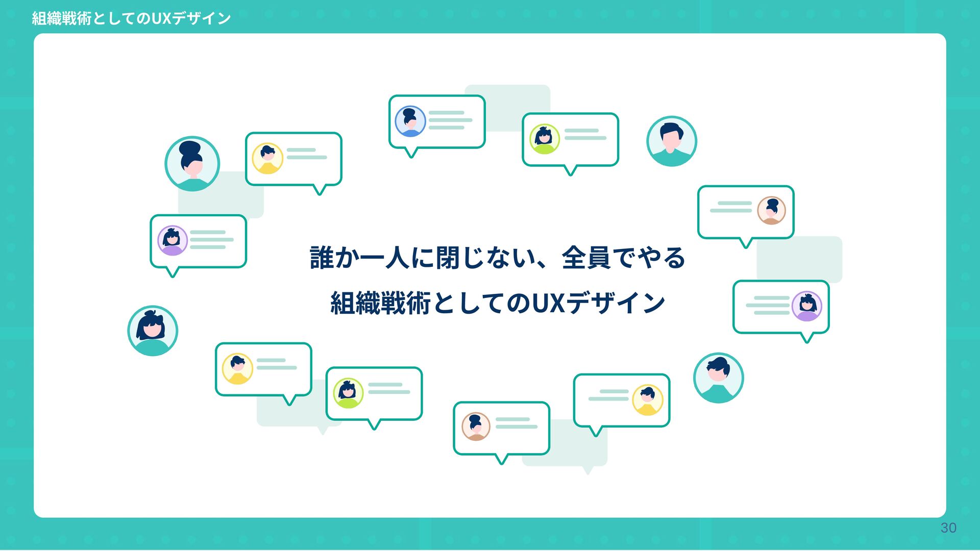 Copyright © Hatena Co., Ltd. 30 誰か⼀⼈に閉じない、全員でやる 組織戦術としてのUXデザイン 組織戦術としてのUXデザイン