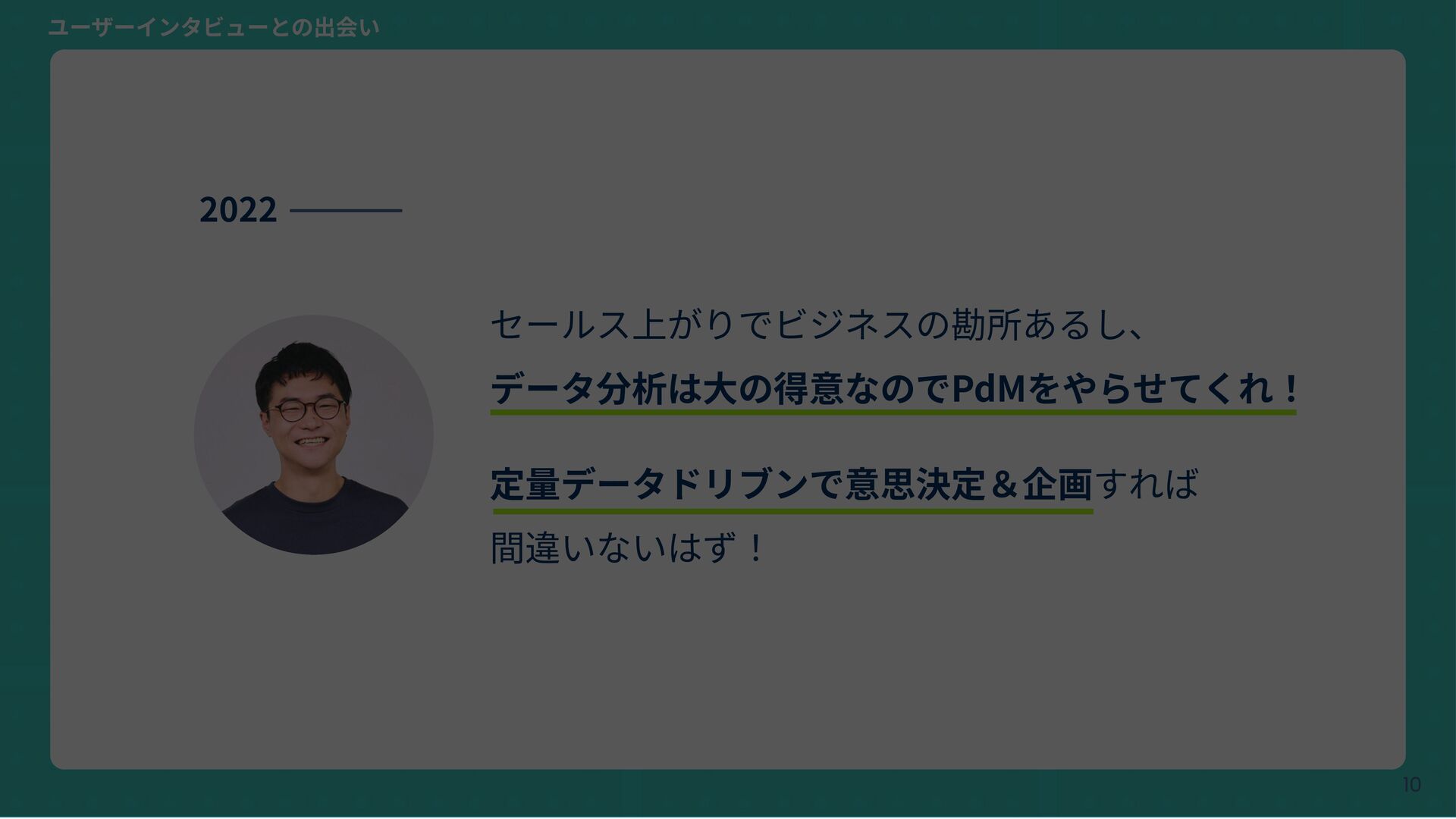 Copyright © Hatena Co., Ltd. 9 セールス上がりでビジネスの勘所あるし、 データ分析は⼤の得意なのでPdMをやらせてくれ! 定量データドリブンで意思決定&企画すれば 間違いないはず!