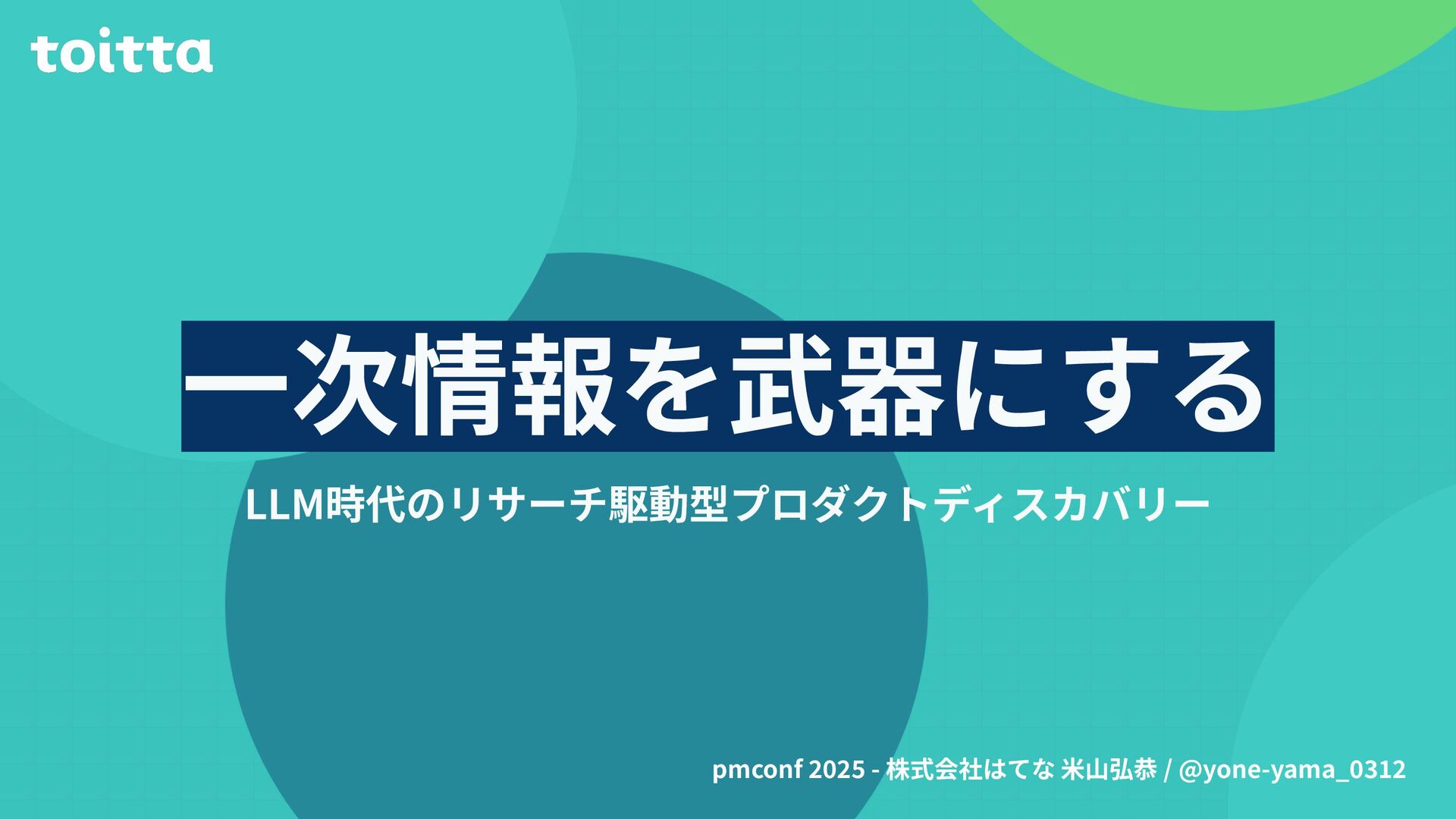 ⼀次情報を武器にする LLM時代のリサーチ駆動型プロダクトディスカバリー pmconf 2025 - 株式会社はてな ⽶⼭弘恭 / @yone-yama_0312