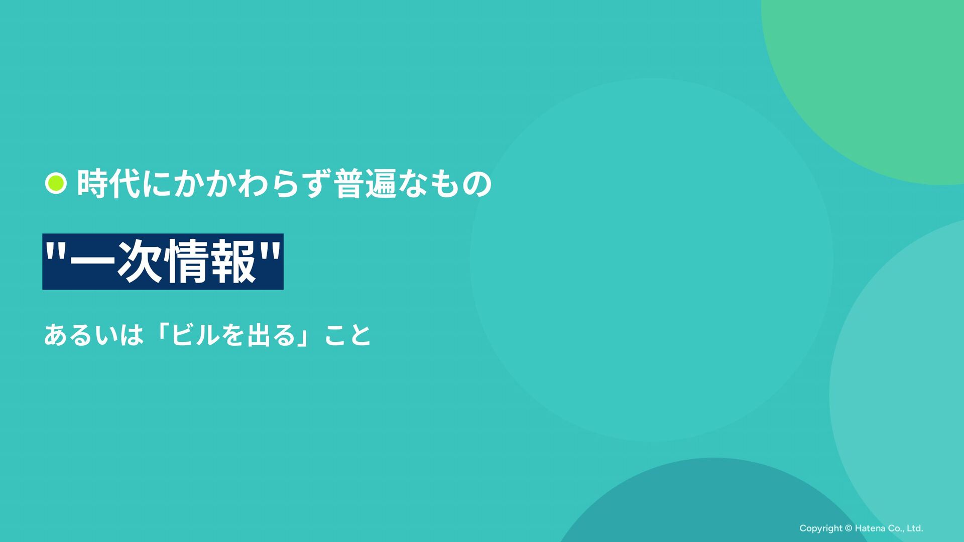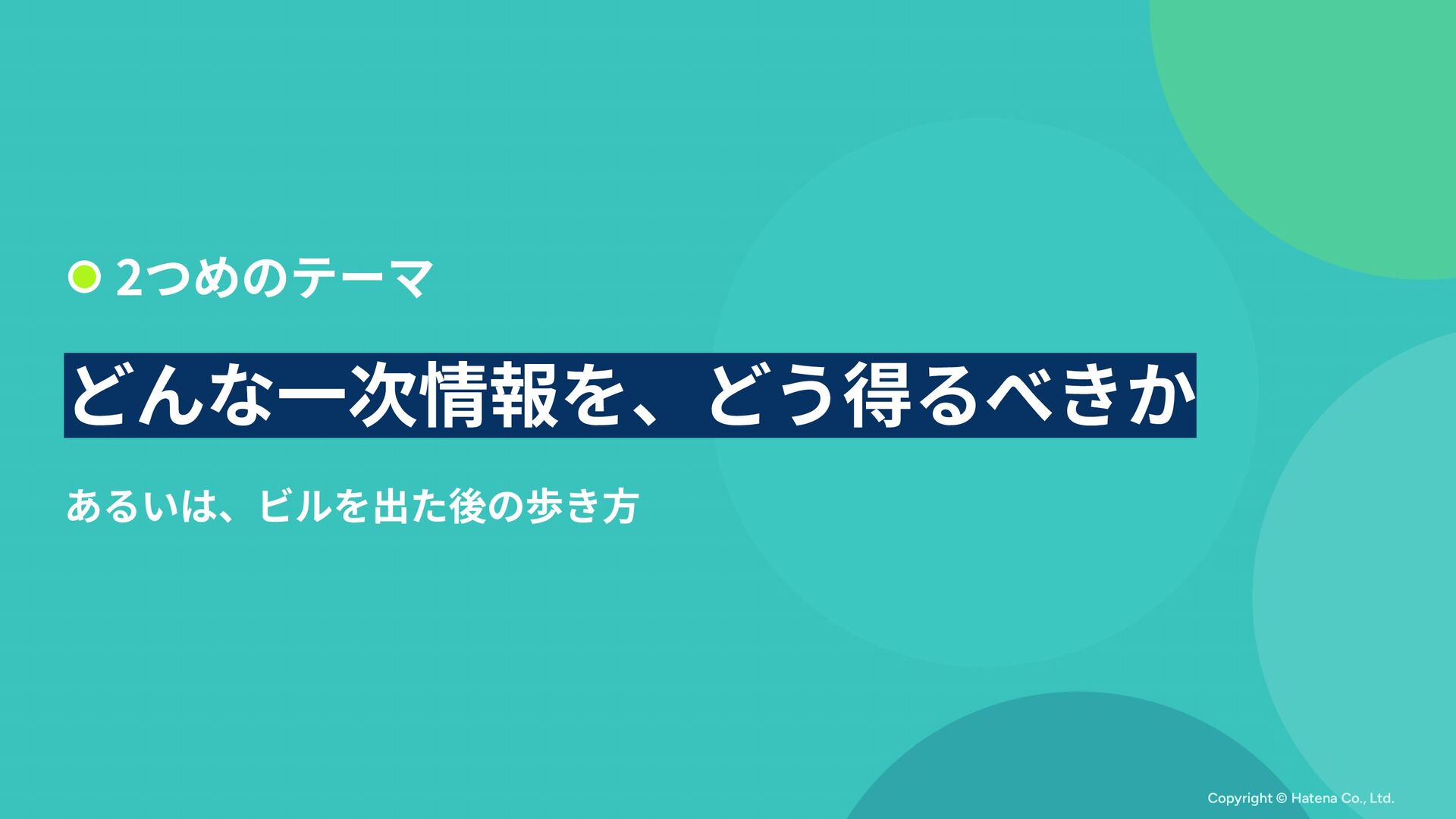 Copyright © Hatena Co., Ltd. どんな⼀次情報を、どう得るべきか あるいは、ビルを出た後の歩き⽅ 2つめのテーマ