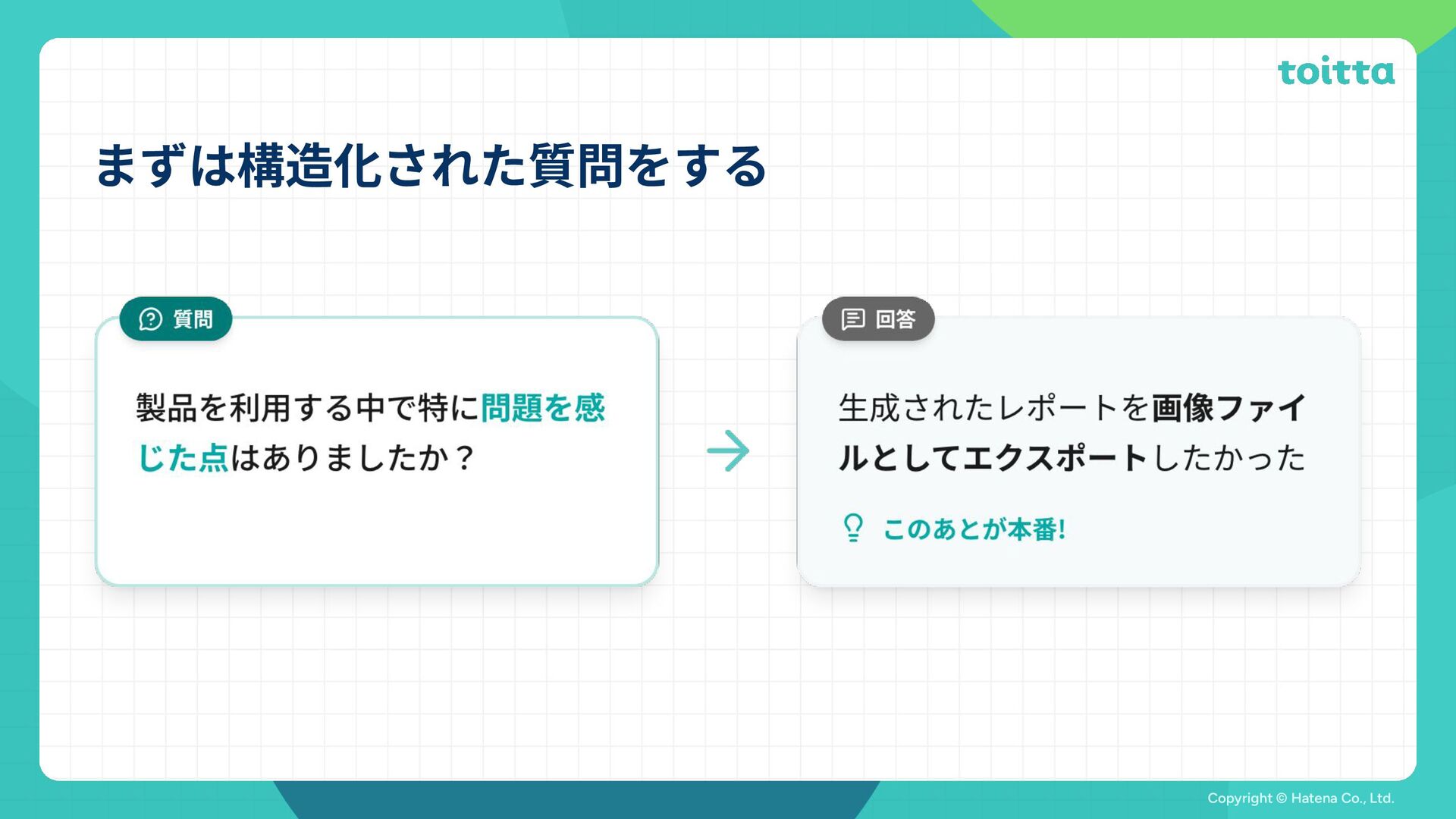 Copyright © Hatena Co., Ltd. まずは構造化された質問をする