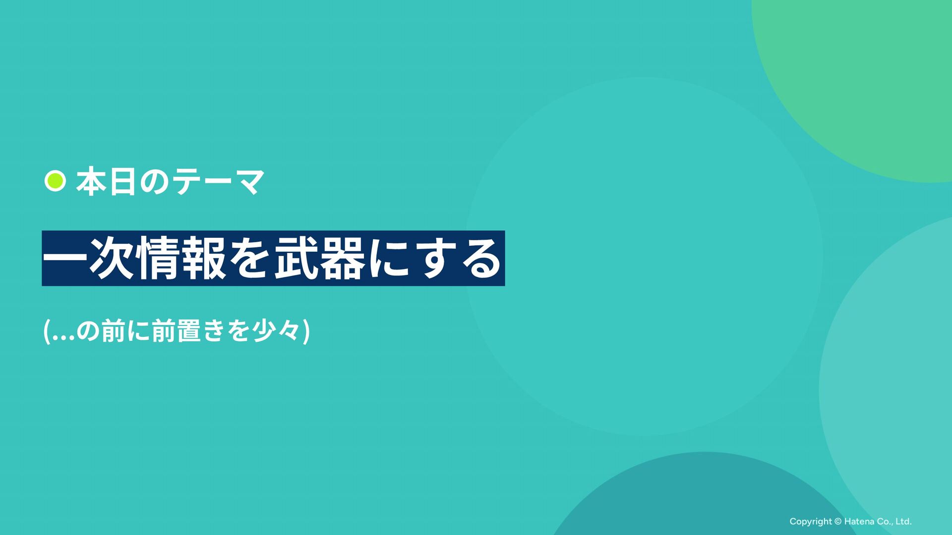 Copyright © Hatena Co., Ltd. ⼀次情報を武器にする (...の前に前置きを少々) 本⽇のテーマ