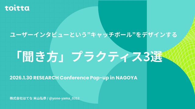 2026/1/30に開催されたRESEARCH Conference Pop-up in NAGOYA 2026 のLT資料です。