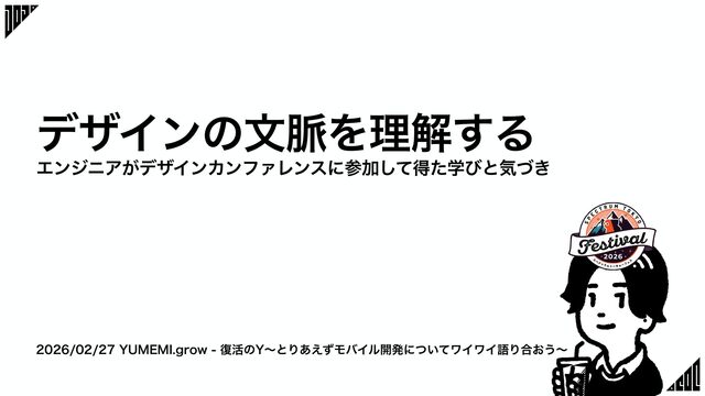 :6.&.*HSPX෮׆ͷ:ʙͱΓ͋͑ͣϞόΠϧ։ൃʹ͍ͭͯϫΠϫΠޠΓ߹͓͏ʙ σβΠϯͷจ຺Λཧղ͢Δ ΤϯδχΞ͕σβΠϯΧϯϑΝϨϯεʹࢀՃͯ͠ಘֶͨͼͱؾ͖ͮ