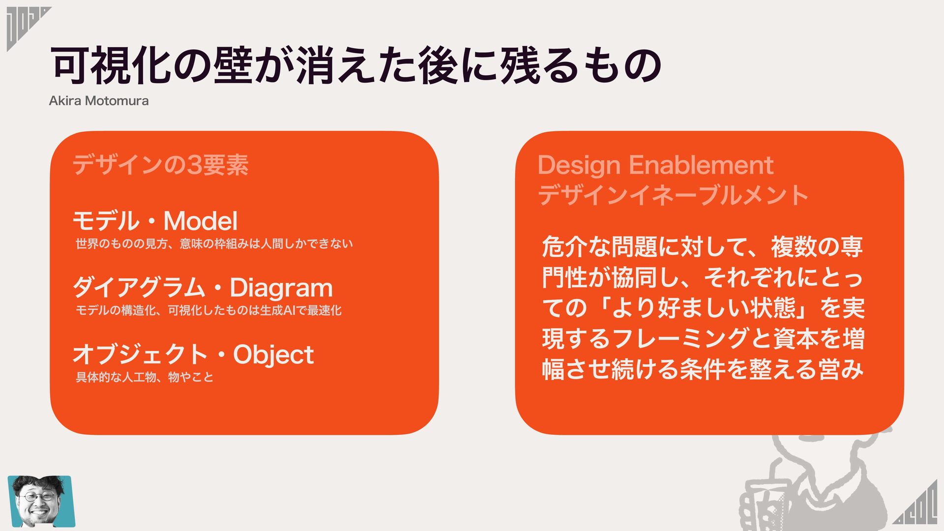 ՄࢹԽͷน͕ফ͑ͨޙʹΔͷ "LJSB.PUPNVSB σβΠϯͷཁૉ Ϟσϧɾ.PEFM μΠΞάϥϜɾ%JBHSBN ΦϒδΣΫτɾ0CKFDU ੈքͷͷͷݟํɺҙຯͷΈਓ͔ؒ͠Ͱ͖ͳ͍ ϞσϧͷߏԽɺՄࢹԽͨ͠ͷੜ"*Ͱ࠷Խ ۩ମతͳਓɺ͜ͱ %FTJHO&OBCMFNFOU