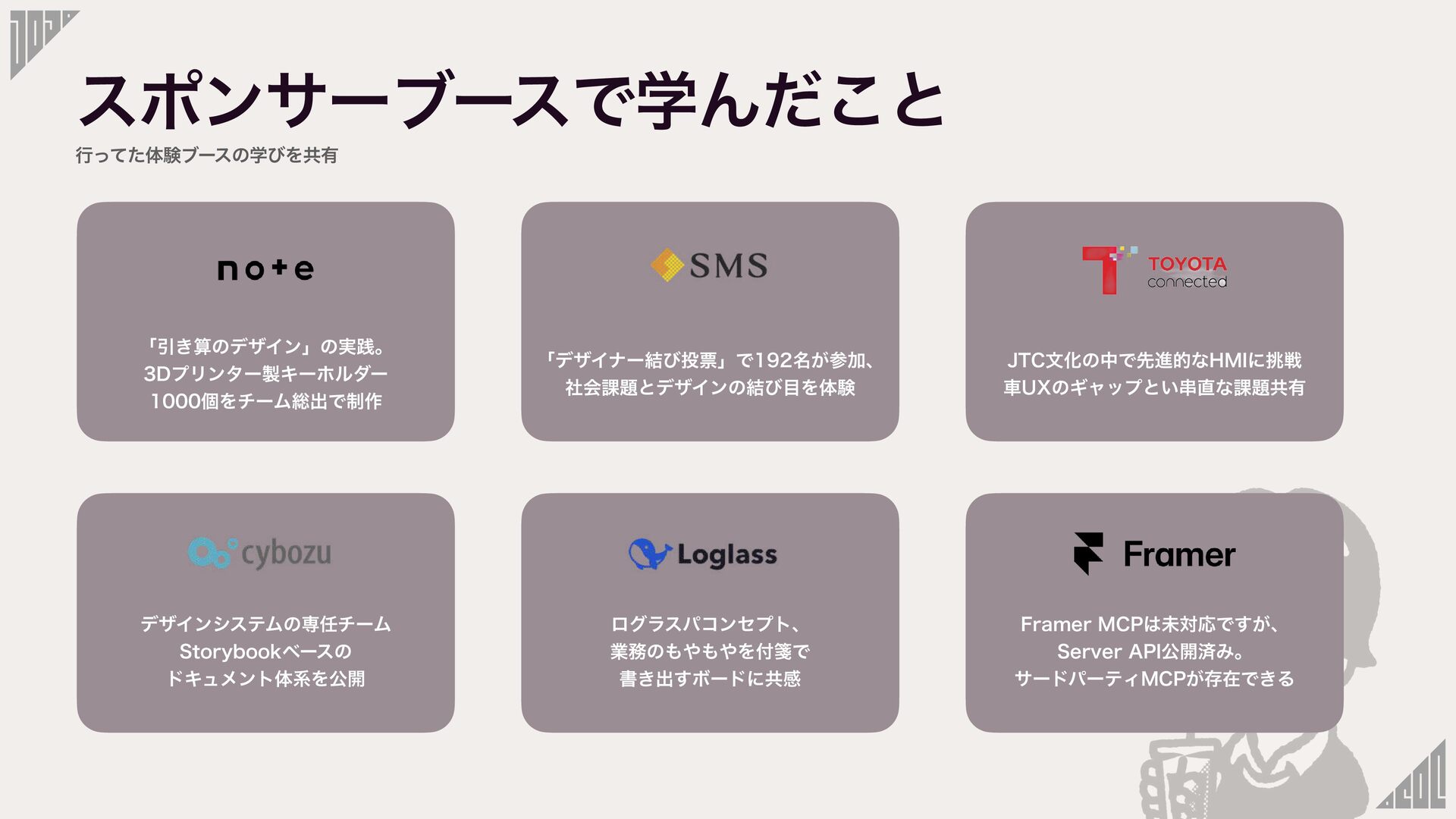 εϙϯαʔϒʔεͰֶΜͩ͜ͱ ߦͬͯͨମݧϒʔεͷֶͼΛڞ༗ ʮҾ͖ࢉͷσβΠϯʯͷ࣮ફɻ %ϓϦϯλʔΩʔϗϧμʔ ݸΛνʔϜ૯ग़Ͱ੍࡞ ʮσβΠφʔ݁ͼථʯͰ໊͕ࢀՃɺ ࣾձ՝ͱσβΠϯͷ݁ͼΛମݧ +5$จԽͷதͰઌਐతͳ).*ʹઓ ं69ͷΪϟοϓͱ͍۲ͳ՝ڞ༗ σβΠϯγεςϜͷઐνʔϜ