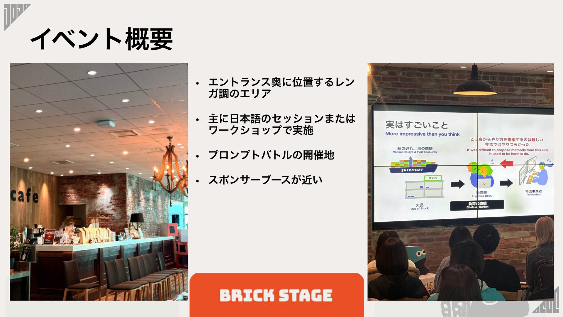 w ΤϯτϥϯεԞʹҐஔ͢ΔϨϯ ΨௐͷΤϦΞ w ओʹຊޠͷηογϣϯ·ͨ ϫʔΫγϣοϓͰ࣮ࢪ w ϓϩϯϓτότϧͷ։࠵ w εϙϯαʔϒʔε͕͍ۙ