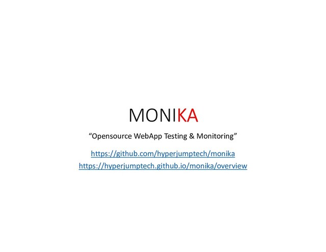 Introduction on opensource monitoring solution called Monika initiated by Hyperjump team. Using Monika, developer, tester and devops can collaborate together to do web-server API testing, regression and monitoring, ensuring quality get maintained end-to-end.