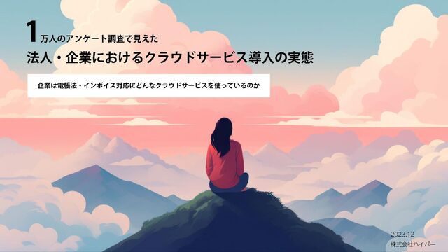 法人向けにITサービス事業、クラウドサービス導入支援事業を展開する株式会社ハイパーでは、2023年11月に、ビジネスパーソン1万人を対象にクラウドサービスの導入状況についてアンケート調査を実施しました。 トレンドの電子帳簿保存法・インボイス制度対応にどんなクラウドサービスを使っているのか?等、これからクラウドサービスの利活用を検討されている方、更に加速したい方の参考になれば幸いです。