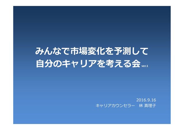 しかし、難しい…。視界はもやもやしていて、なかなか一人では先を見通せません。こういうことは、とりあえずワイワイ語り合ってみるのがいいのではないか。ということで、ワークショップの体裁でスライドを用意しました。