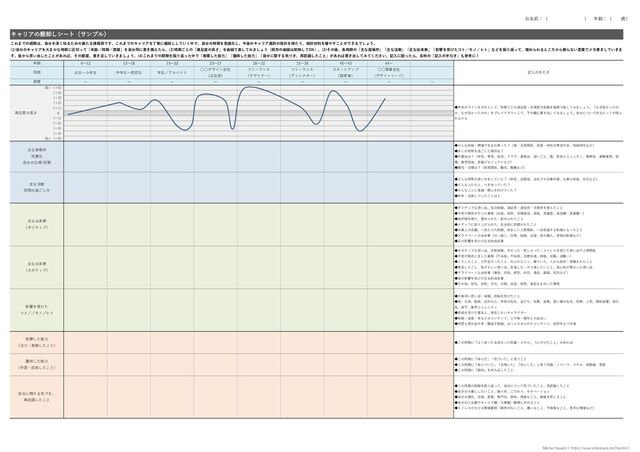 一人でもできる、「キャリアの棚卸しシート」の型と手引きを作ってみたので、よろしければダウンロードしてご活用ください。 詳しくは筆者ブログ(心のうち)にて。 https://hysmrk.cocolog-nifty.com/blog/2020/02/post-88a8e3.html ※クリエイティブ・コモンズ 表示 - 非営利 - 継承 4.0 国際ライセンスの下に提供します。 http://creativecommons.org/licenses/by-nc-sa/4.0/