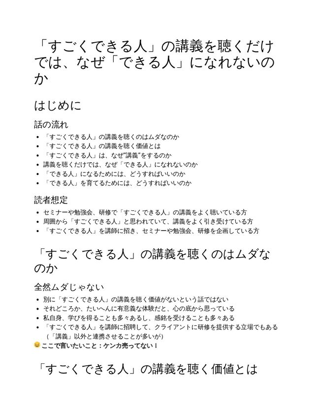 「すごくできる人」の講義を聴くだけでは、なぜ「できる人」になれないのか…という問いに対して、自分なりの回答をテキストに起こしながら整理してみようと思い、あれやこれや考えていたら、このようなドキュメントができました。