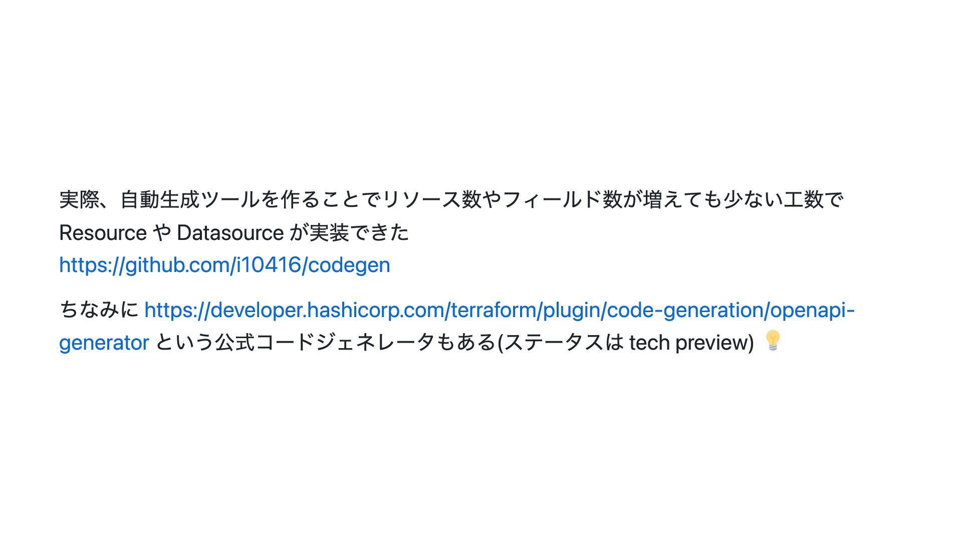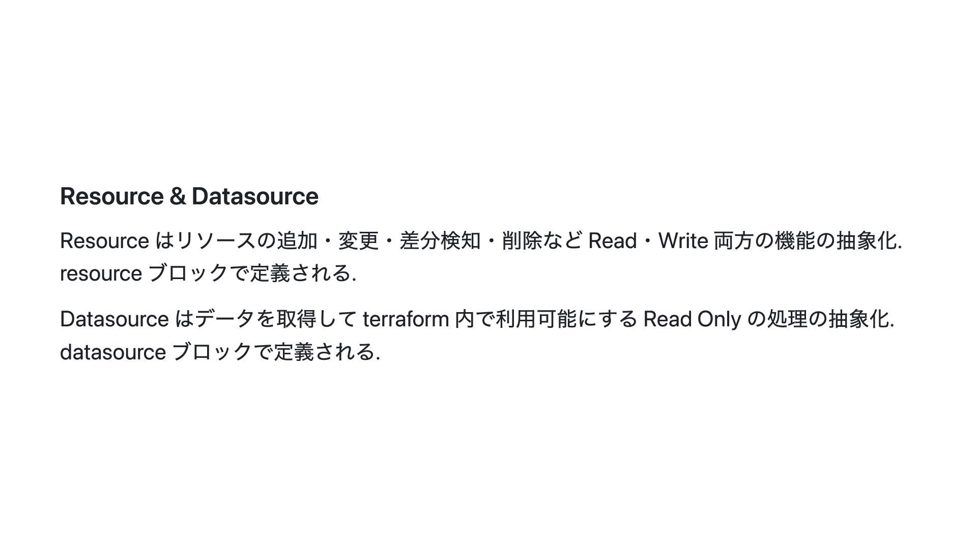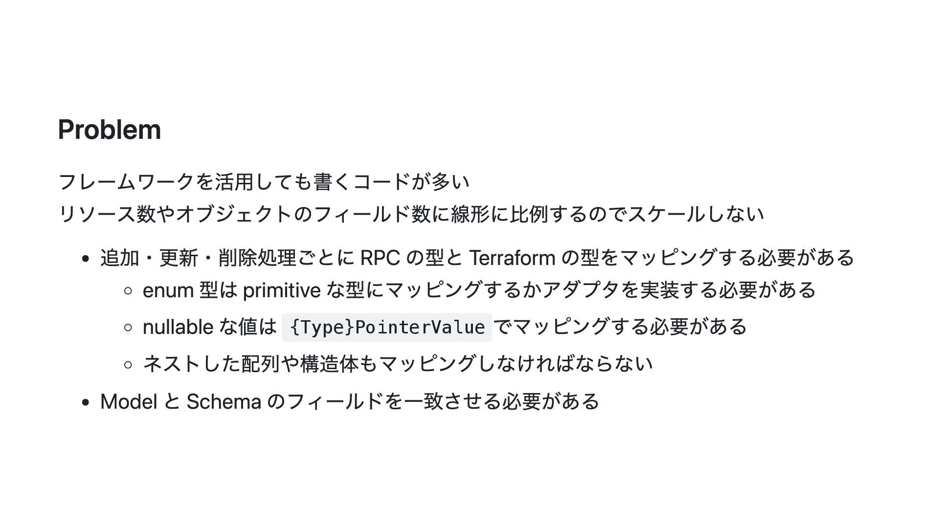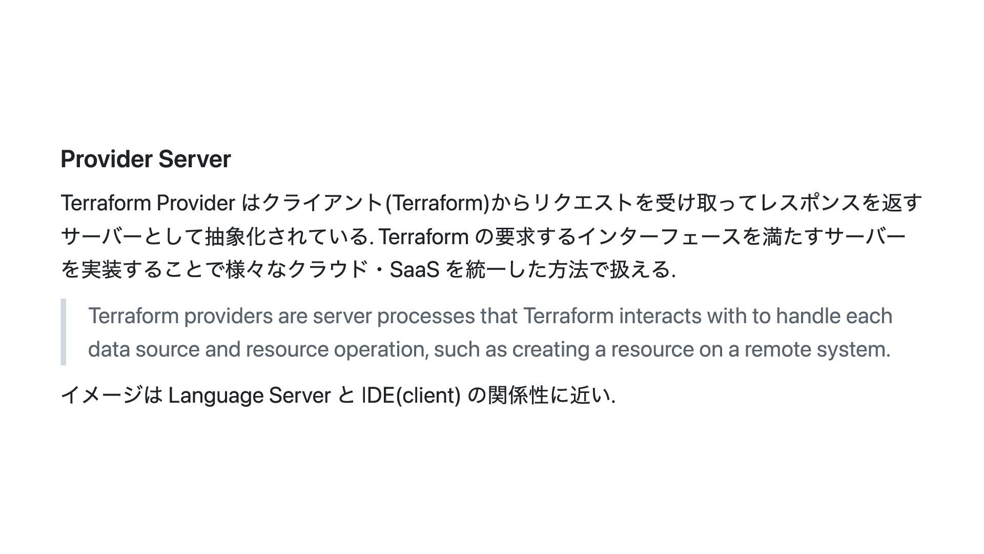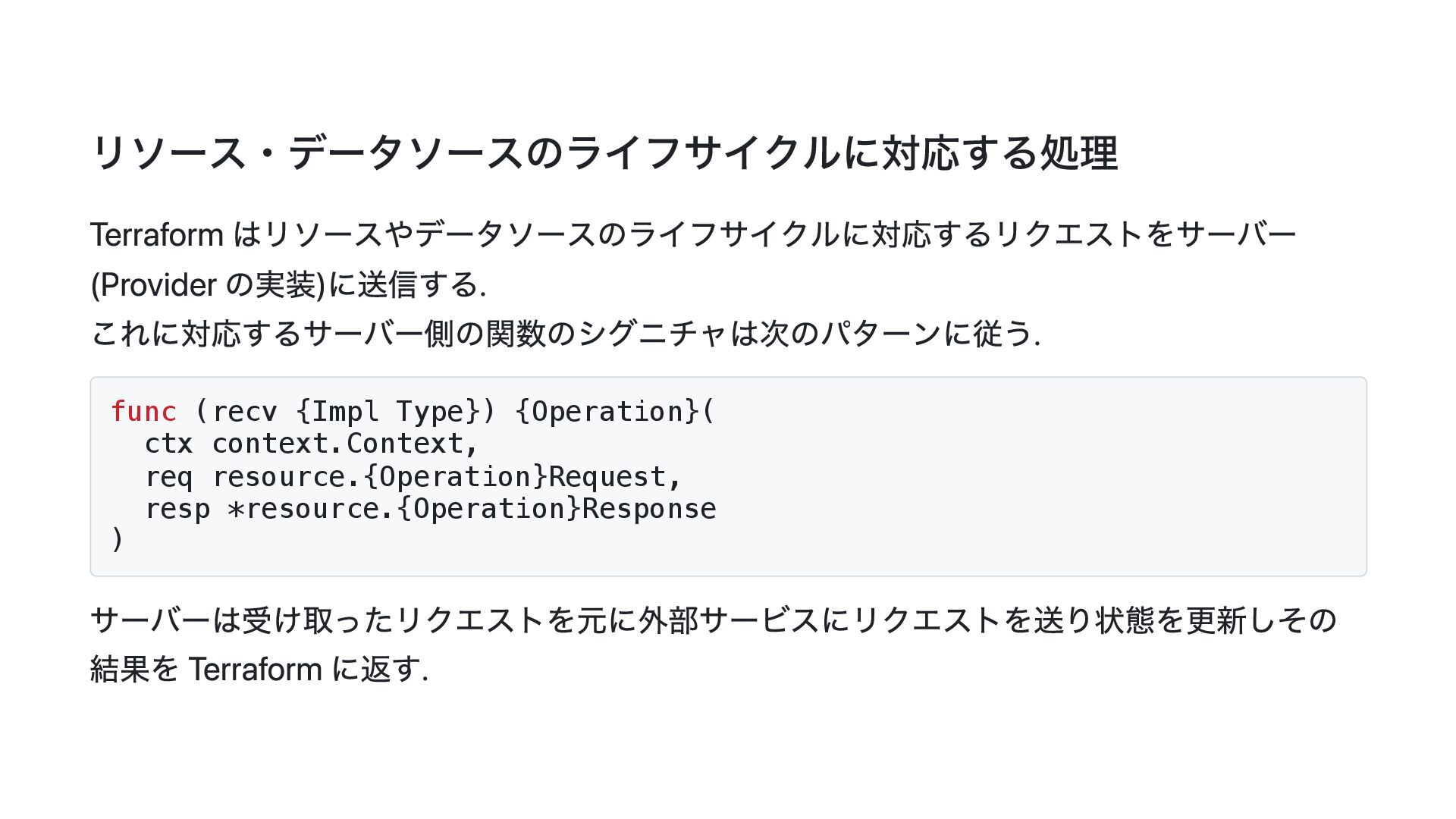 このスライドでは、その動機・背景と Terraform Plugin Framework を利用した provider 開発の概要について説明します。