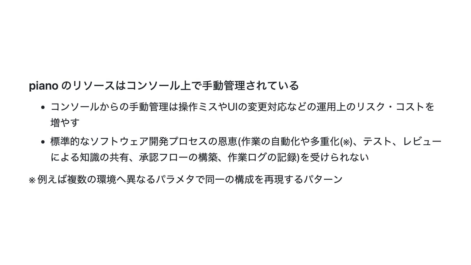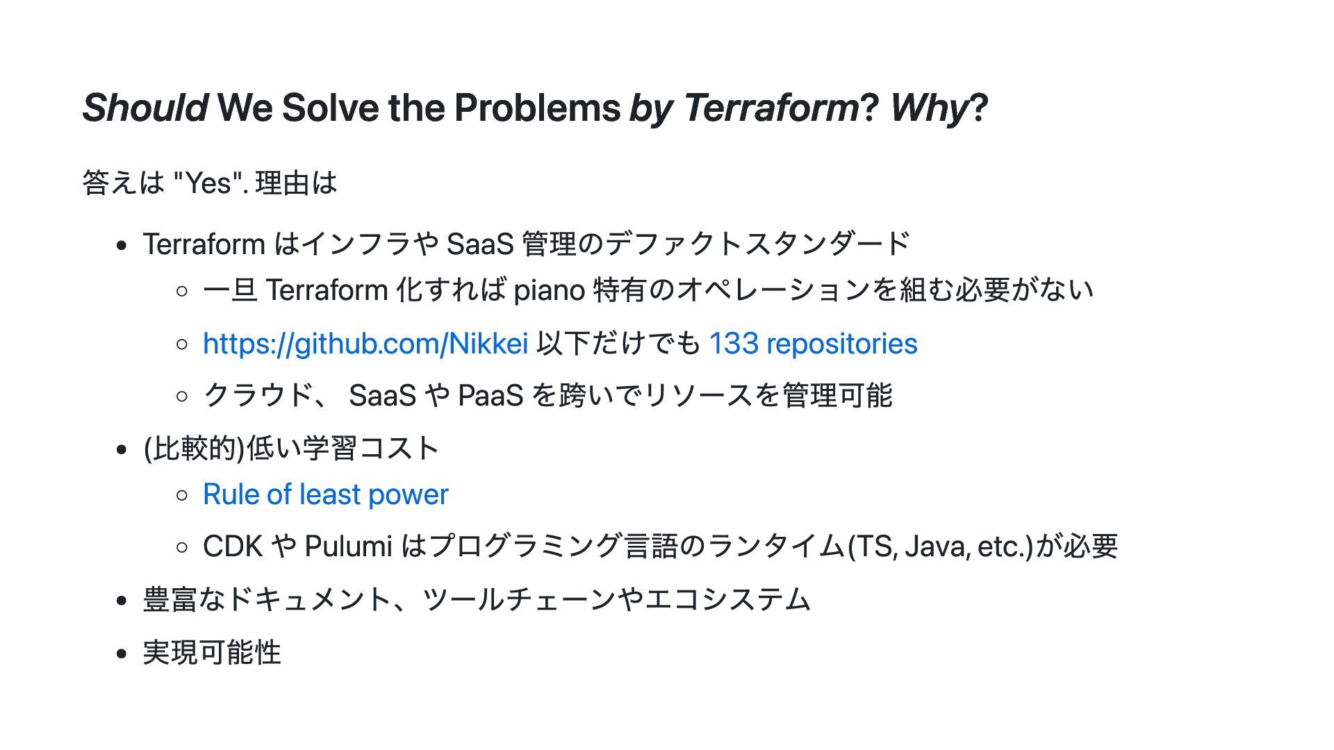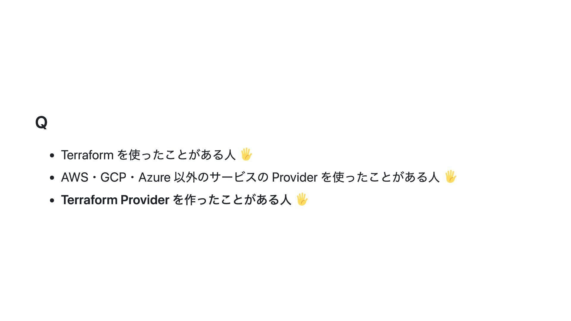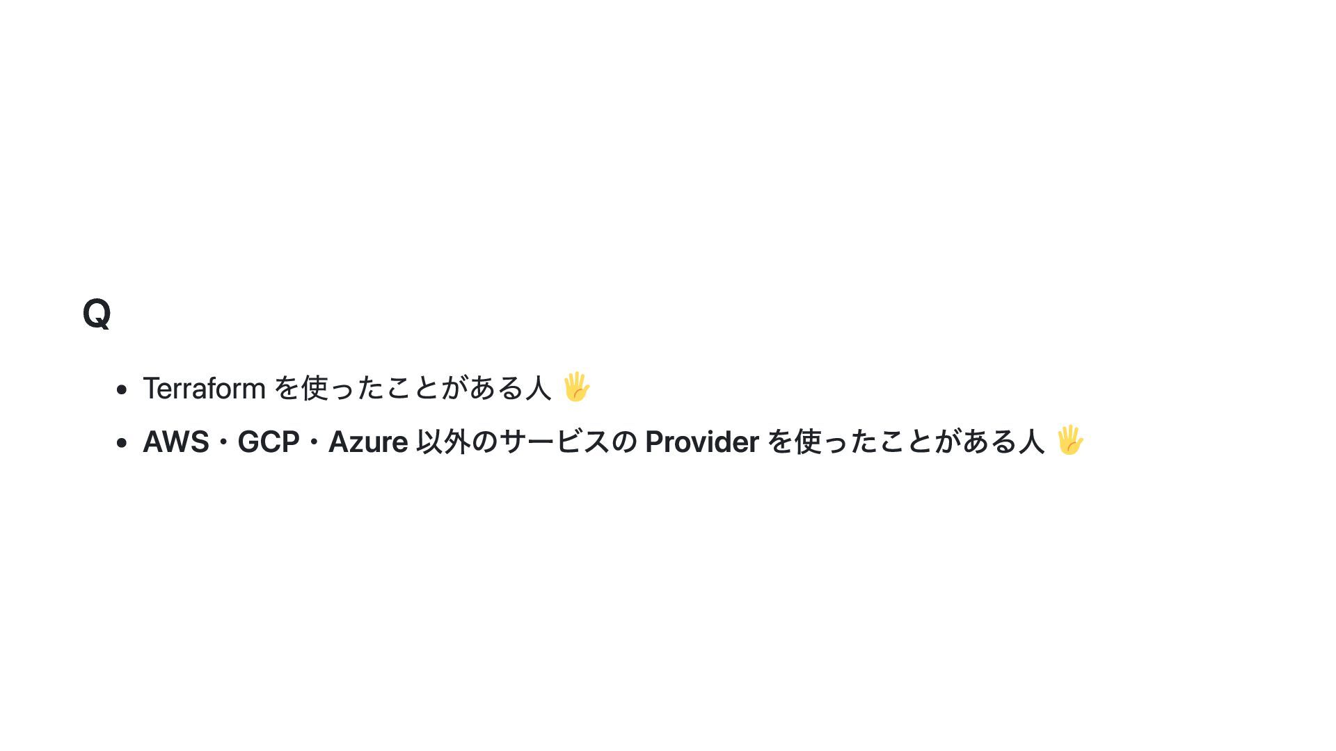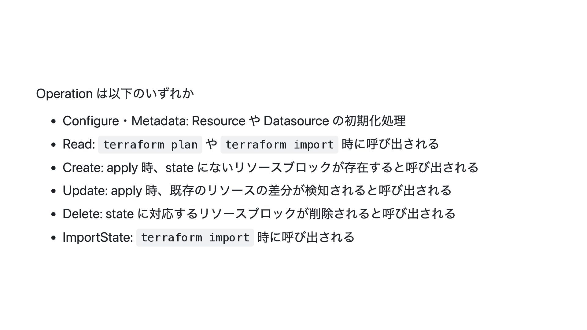 このスライドでは、その動機・背景と Terraform Plugin Framework を利用した provider 開発の概要について説明します。