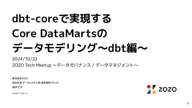 1. dbt-coreで実現する Core DataMartsの データモデリング〜dbt編〜 2024/10/22 ZOZO Tech Meetup ~データガバナンス /