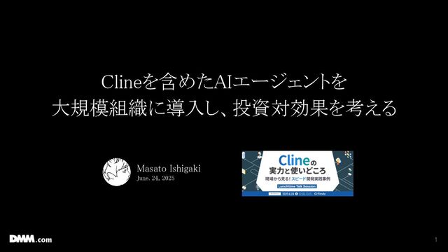 1 Masato Ishigaki June. 24, 2025 Clineを含めたAIエージェントを 大規模組織に導入し、投資対効果を考える