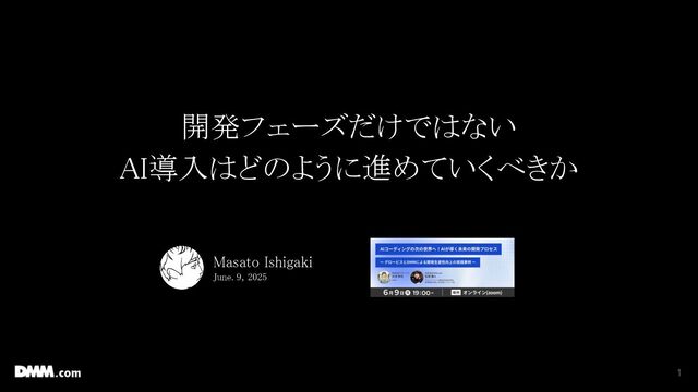 1 Masato Ishigaki June. 9, 2025 開発フェーズだけではない AI導入はどのように進めていくべきか