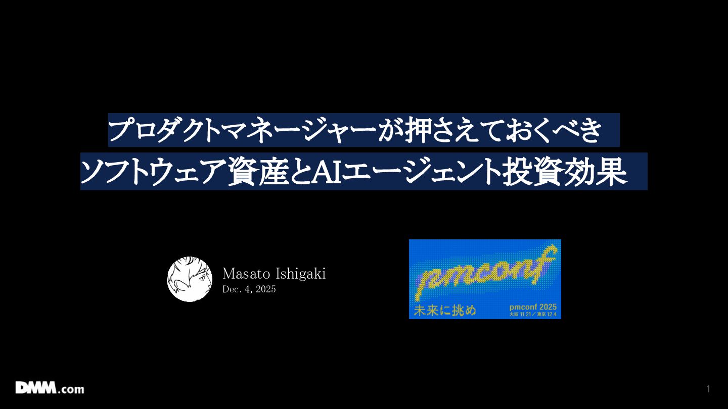 1 Masato Ishigaki Dec. 4, 2025 プロダクトマネージャーが押さえておくべき ソフトウェア資産とAIエージェント投資効果