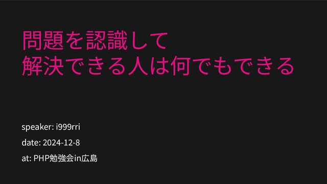 問題を認識して 解決できる⼈は何でもできる speaker: i999rri date: 2024-12-8 at: PHP勉強会in広島