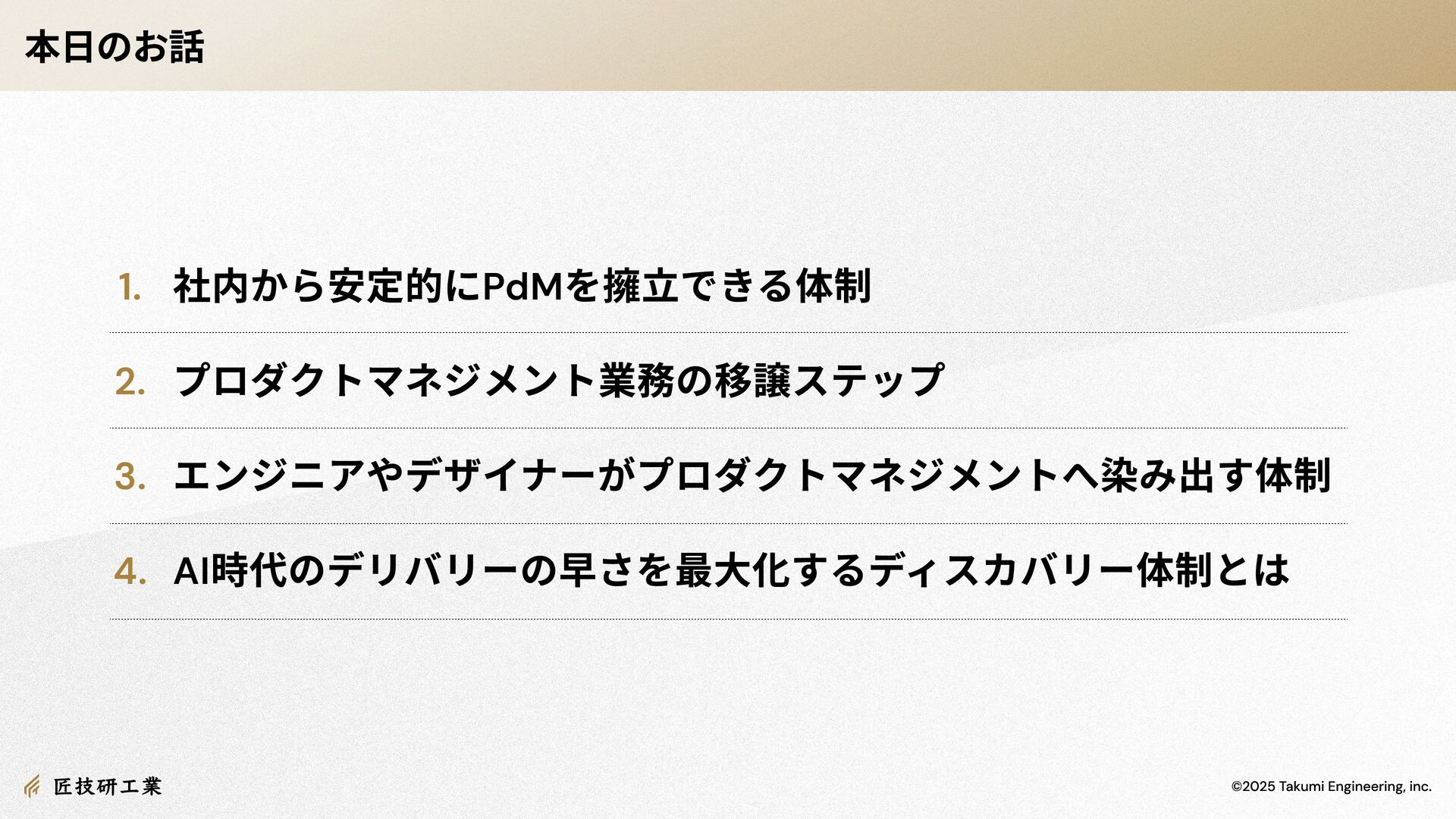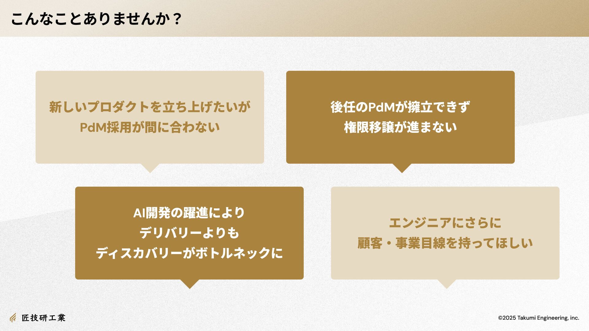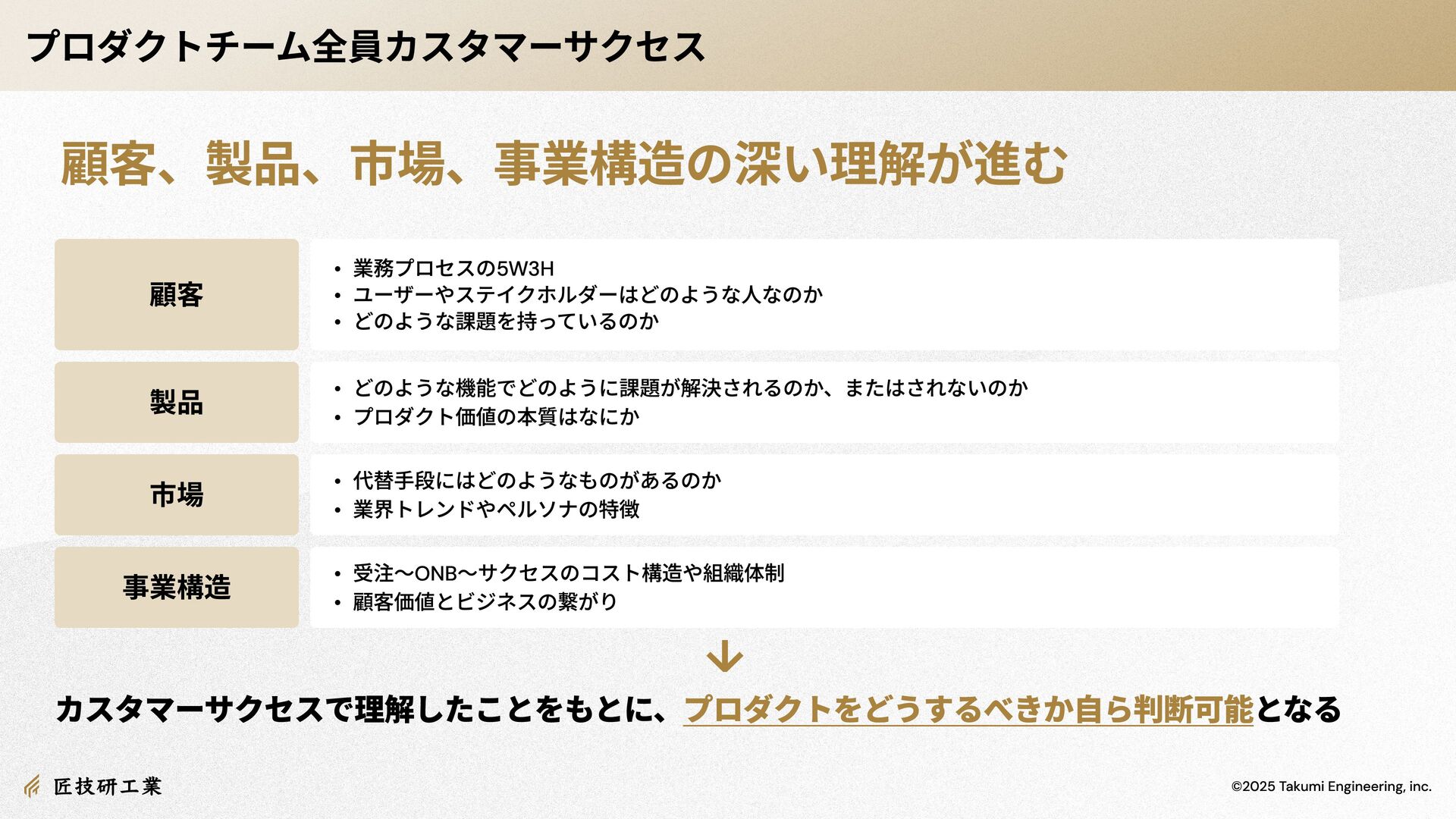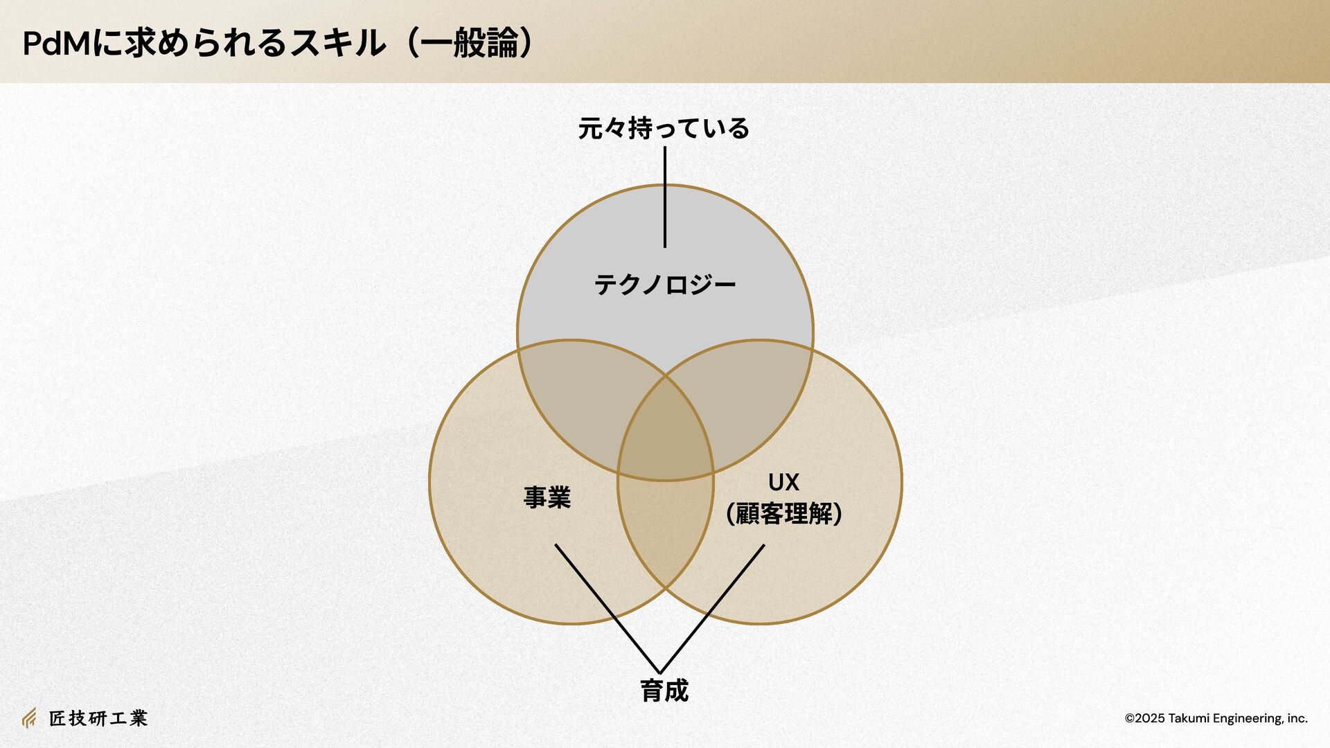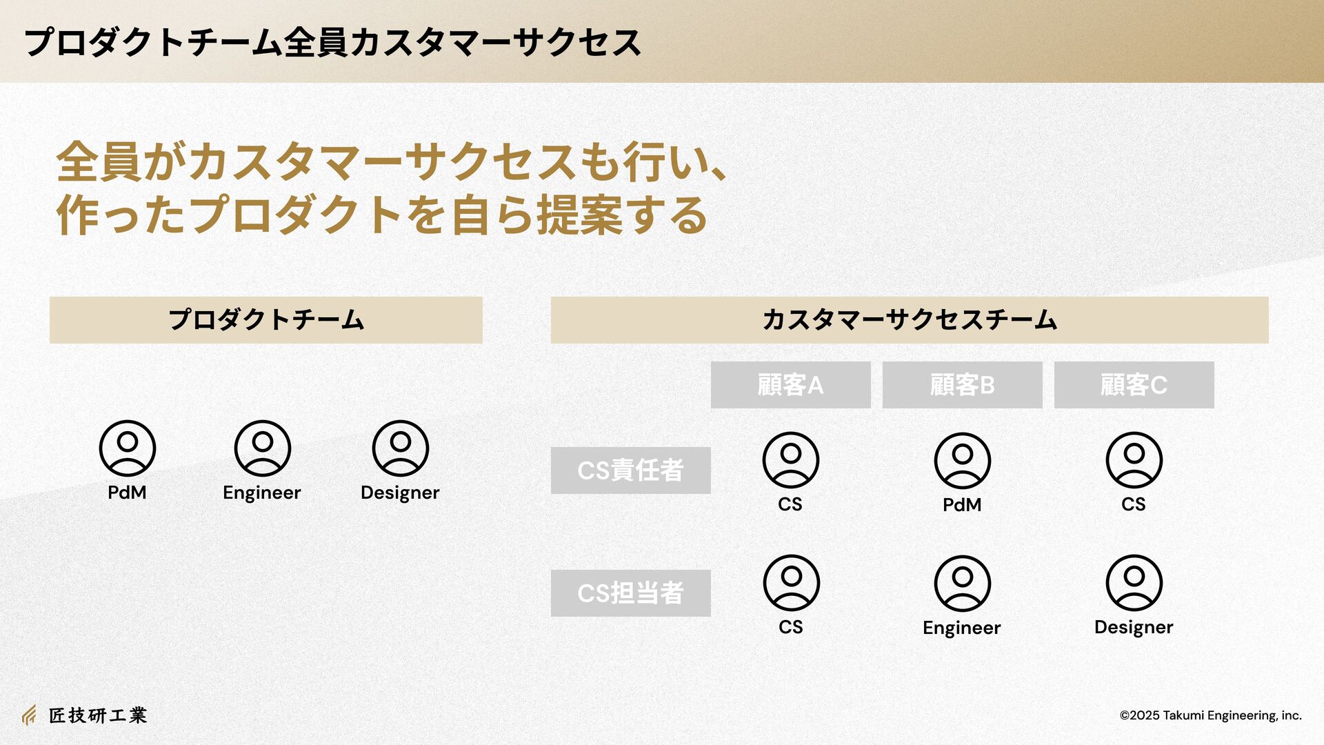 EpicPRD プロダクトロードマップ 製品戦略 目標/組織/ビジョン... How What Why PhasePRD Product Engineer Designer 入社1ヶ月 入社2ヶ月 入社3ヶ月〜6ヶ月 状況に応じて Epicを分解した小さめなスコープのPRDを記述する。 何をなぜ作るのか、顧客/事業インパクトを多角的に考え、 ディスカバリーを行えるようになる 課題理解と解決策立案を小さく行えるようになる ※技術にフォーカスしたエンジニアリングポジションでは必須とはしない 抽象度の高い、0に近い状態のアイデアの種に向き合う 大きなイシューを分解し優先度判断まで行う