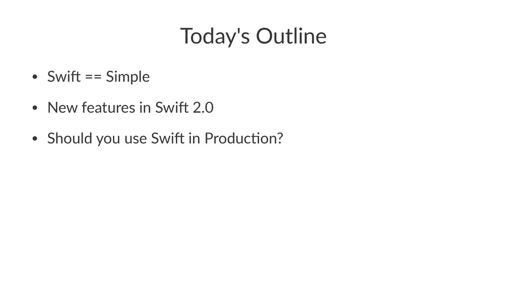 Today's(Outline • Swi%&==&Simple • New%features%in%Swi/%2.0 • Should(you(use(Swi.(in(Produc3on?