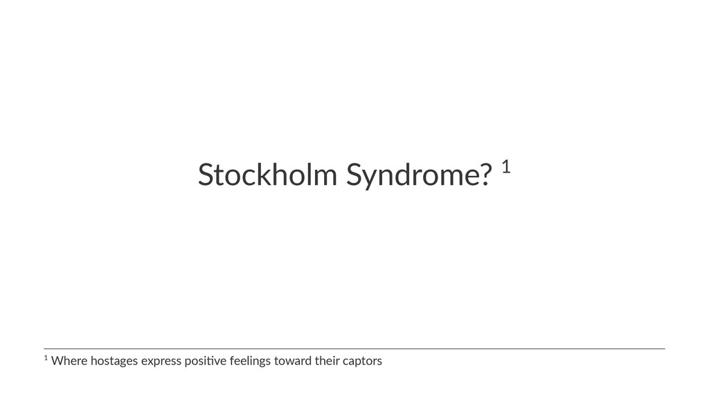 Stockholm)Syndrome?)1 1"Where"hostages"express"posi/ve"feelings"toward"their"captors
