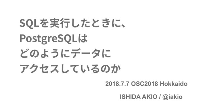 SQLを実⾏したときに、 PostgreSQLは どのようにデータに アクセスしているのか 2018.7.7 OSC2018 Hokkaido ISHIDA AKIO /