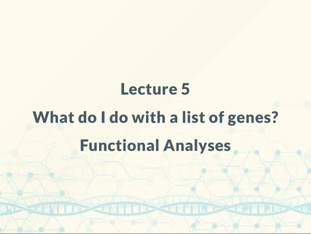 " nal" data analysis results will be on of: 1. A list of names 2. A list of names with a single value 3. A list of names with a matrix of values The names may be gene, transcript or other feature names. The question becomes to how do you interpret the list?